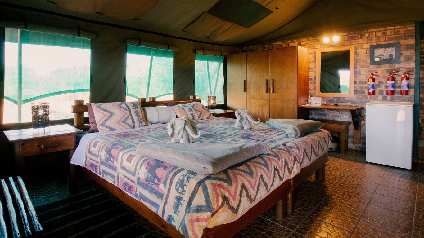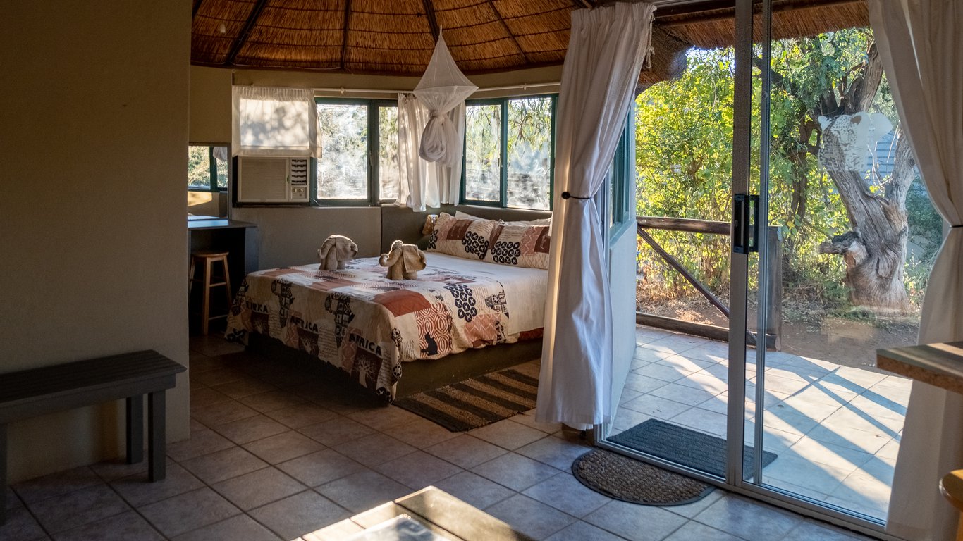 Our Lodge offers scheduled and comfortable accommodation in two air-conditioned en-suite Luxury Chalets with an extra outside shower, three air-conditioned en-suite thatched chalets, and two luxury en-suite safari tents with a fan.