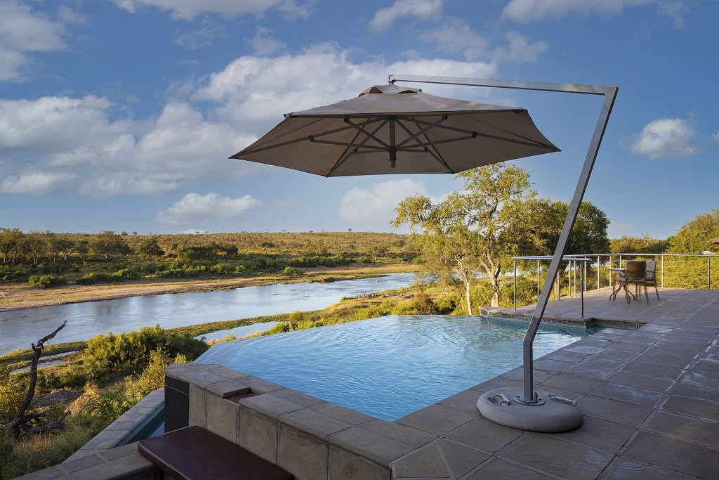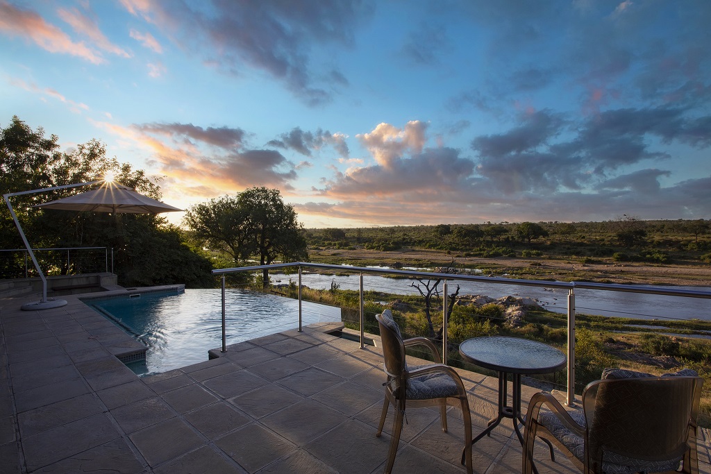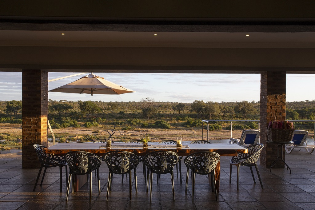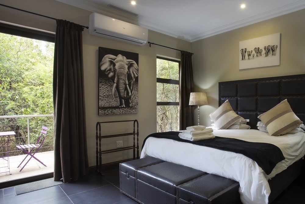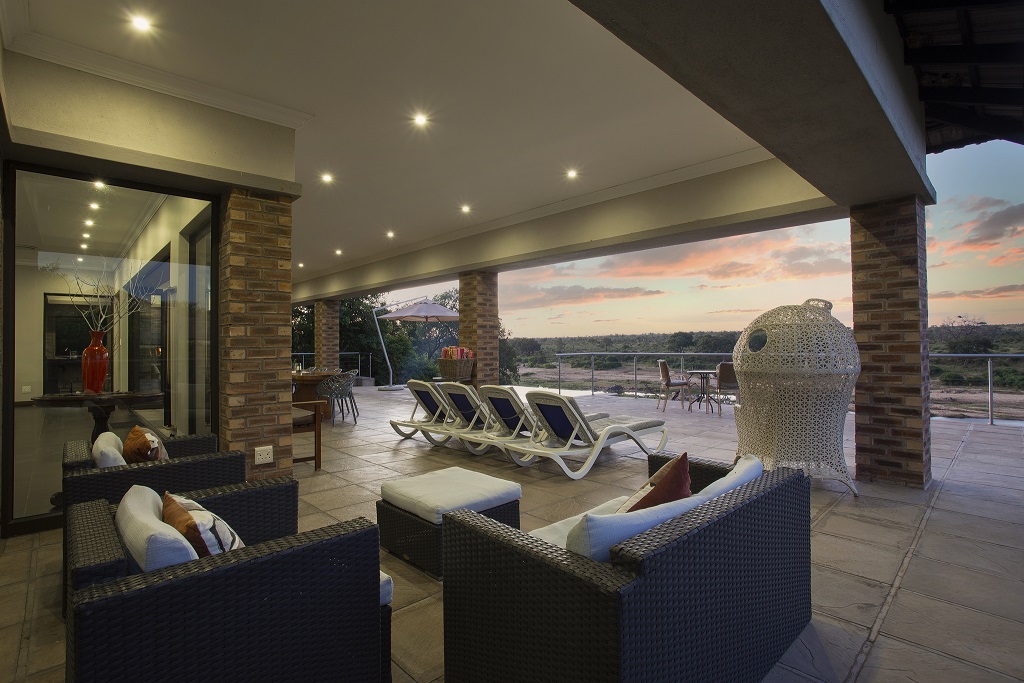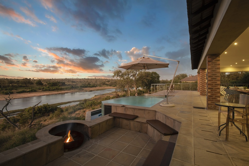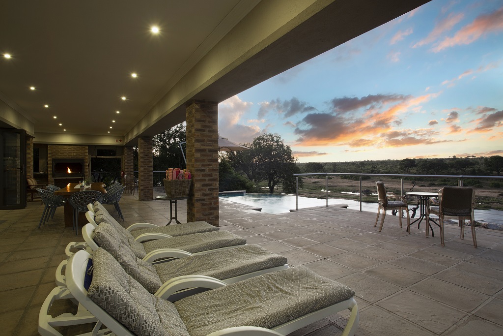 Buffalo Brooke accommodates up to ten guests in five spacious bedrooms. Every bedroom has an en-suite bathroom and an outdoor shower with a private terrace overlooking the Crocodile River with wondrous views. The enormous patio boasts a spaciously comfortable braai (barbeque) area and infinity pool deck where guests can watch a variety of bird and animal life.