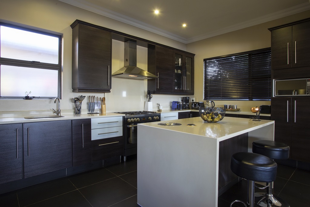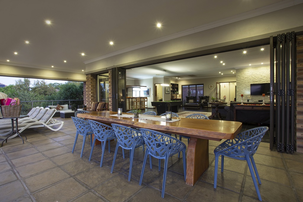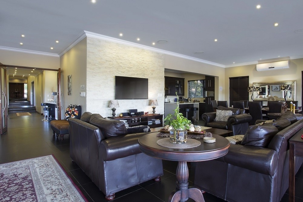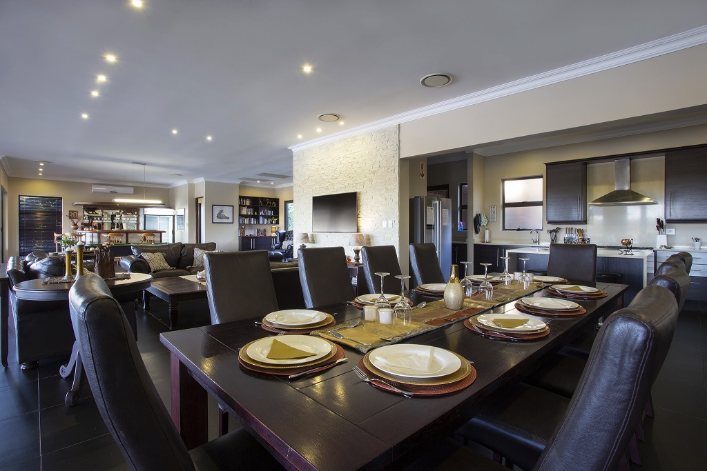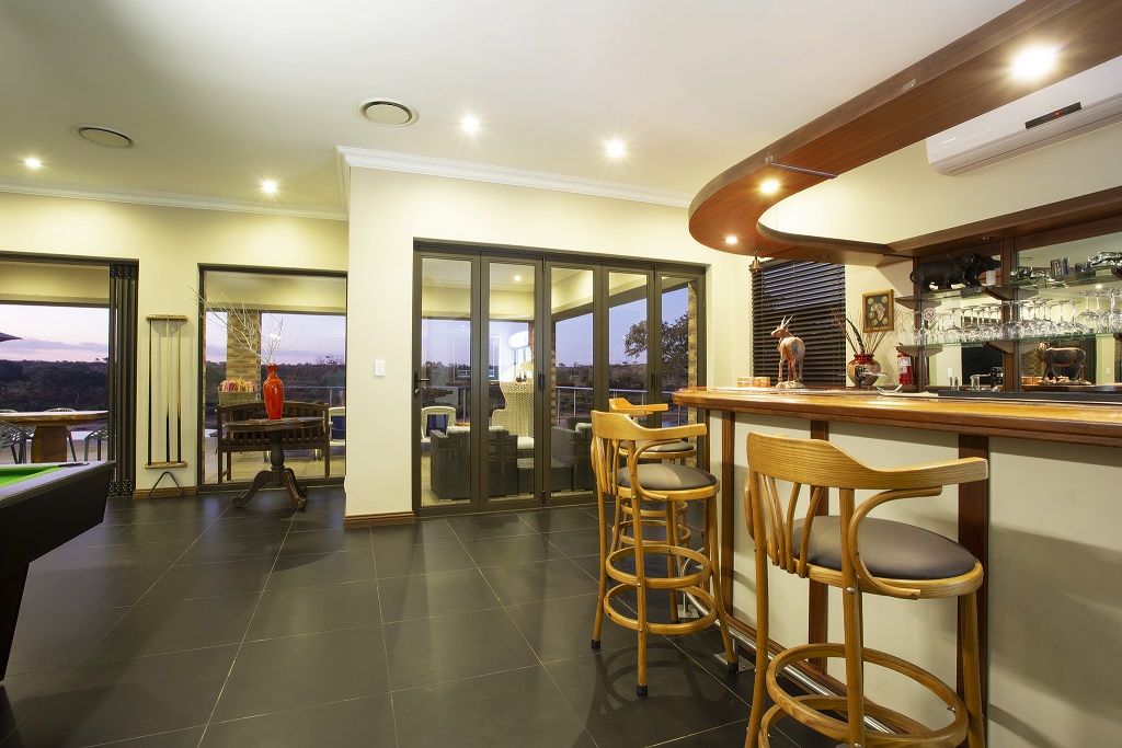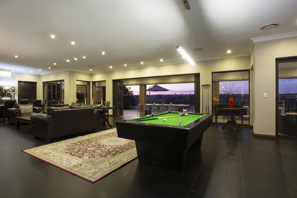 The luxuriousness of the lodge is hard to explain, there you are in the middle of the bush, but have everything one would expect in a top market city establishment. The fully equipped kitchen is a part of the large living area with dining room table, lounge with big screen TV, table tennis / pool table and bar.