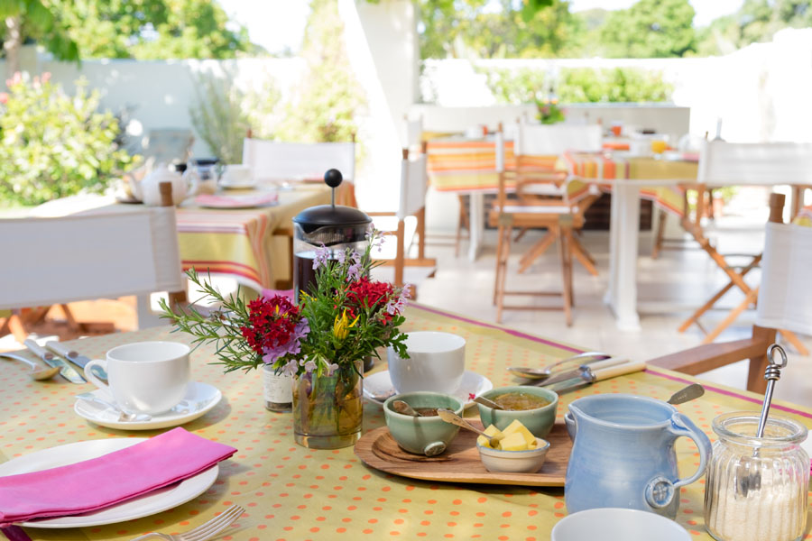 In the summer, a full English or continental breakfast is served on the covered verandah overlooking the swimming pool. In cooler weather we breakfast by a roaring log fire in the dining room.
