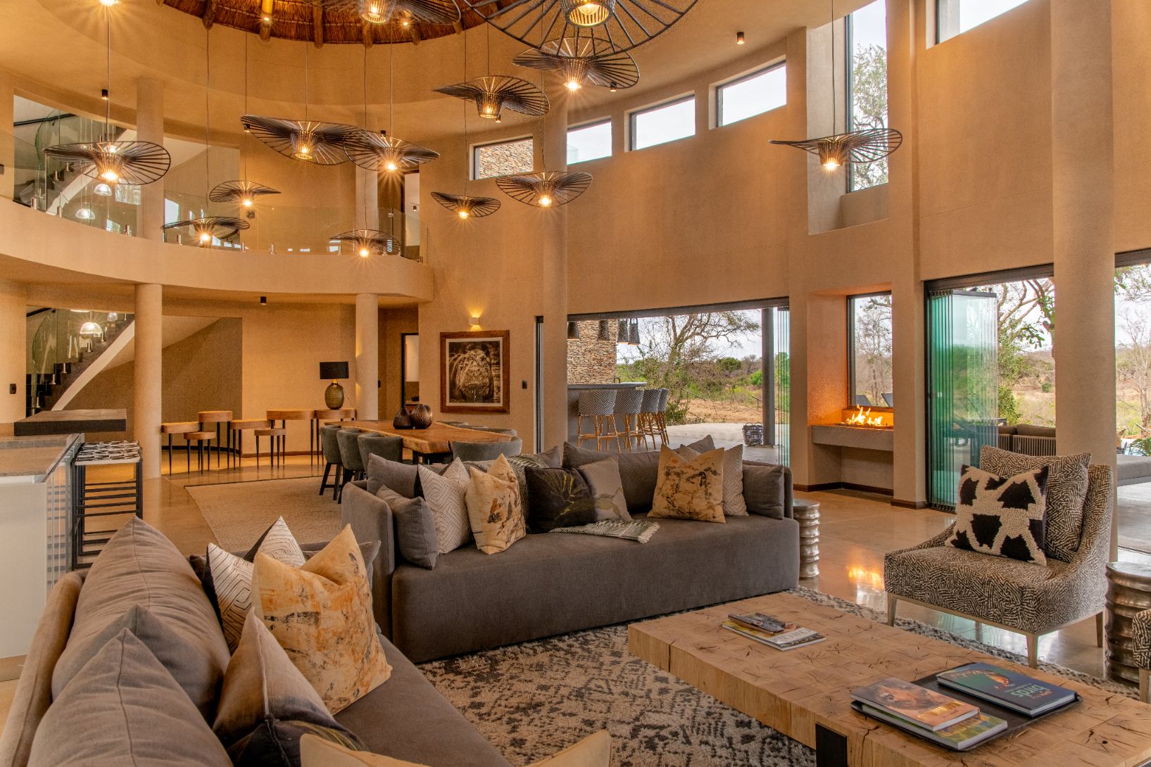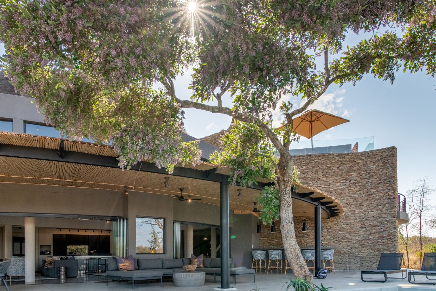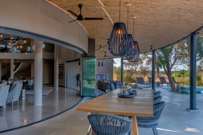 Mpfuvu Lodge is a fresh and contemporary interpretation of the traditional African safari lodge. The luxurious colour palette encompasses organic textures and materials, which are inspired by the African landscapes.The expansive outdoor living and entertaining space provides breath taking views overlooking the Sabie River and into the Kruger National Park.