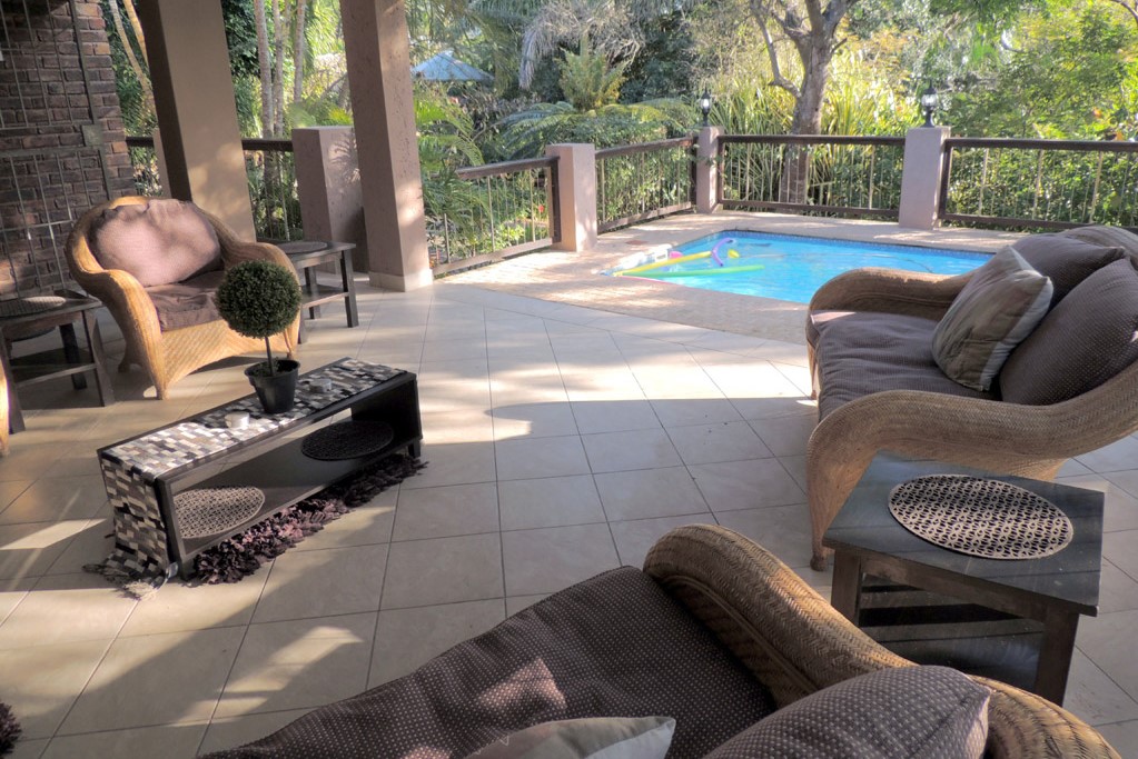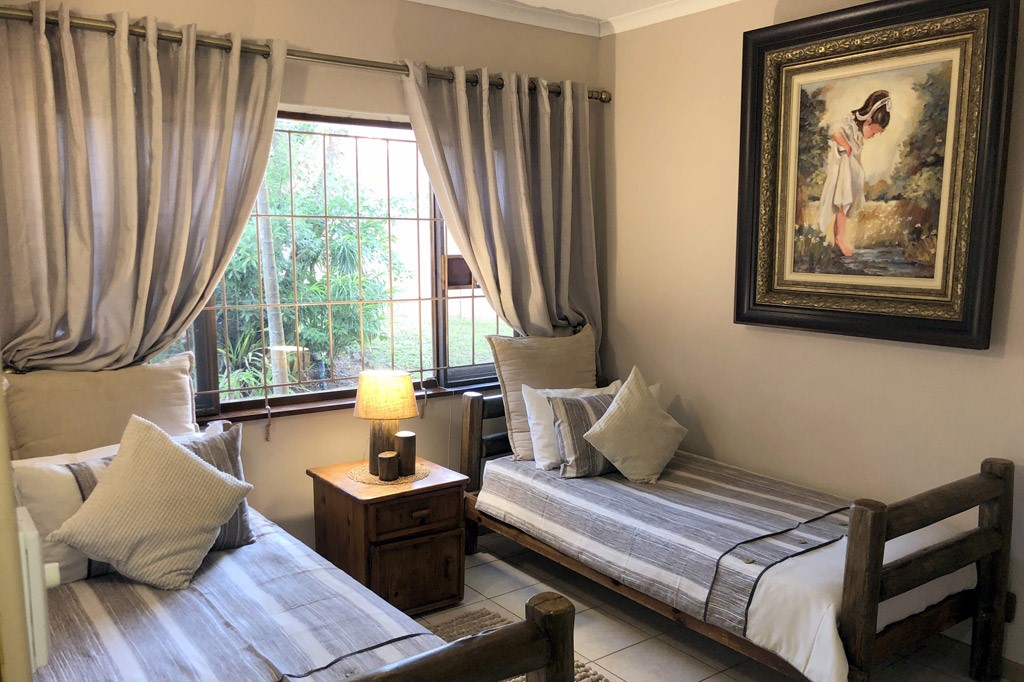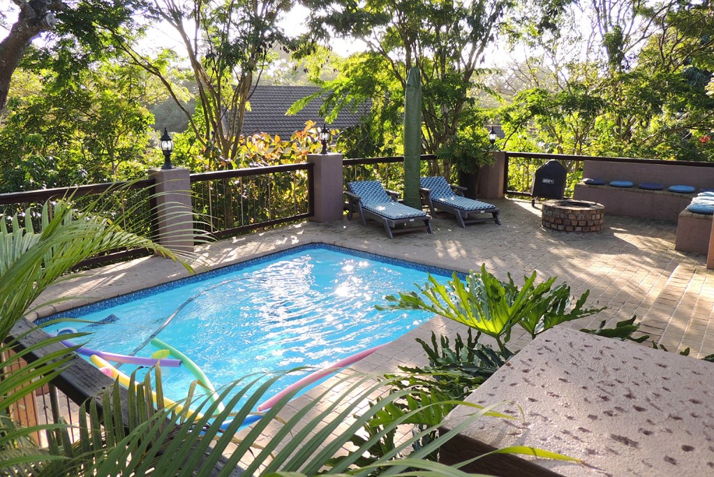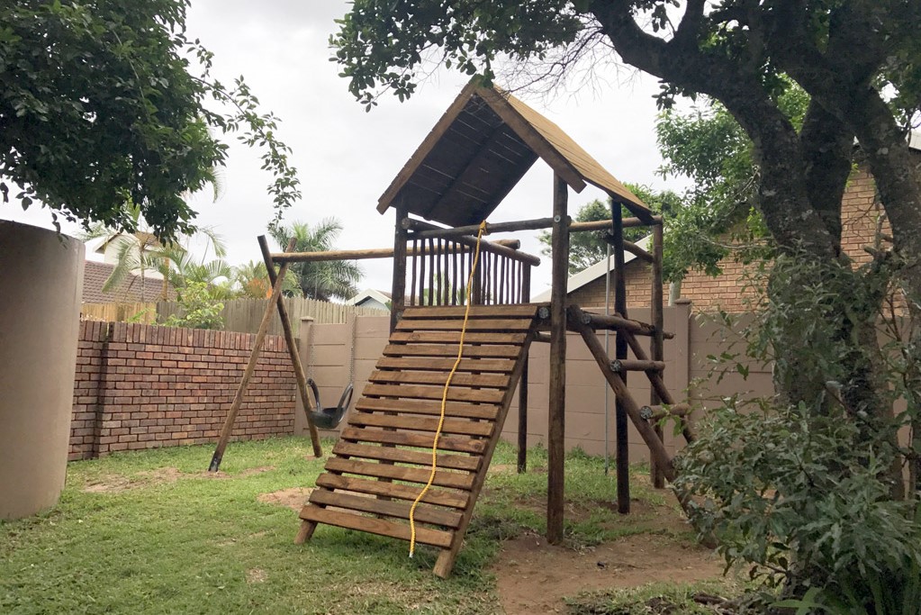 Pelican’s Nest St Lucia has a lovely Sparkling Pool and Entertainment Area with Sliding doors leading out from the Living Room onto the Patio where you may enjoy a sun downer or BBQ/Braai with family and friends while watching the children having fun in the Pool! You will simply experience the true tranquillity of the quiet and Serene Garden together with an Abundance of Bird Life in and around the house. An enclosed Jungle Gym with slide is provided at the back of house for the little ones to play on.