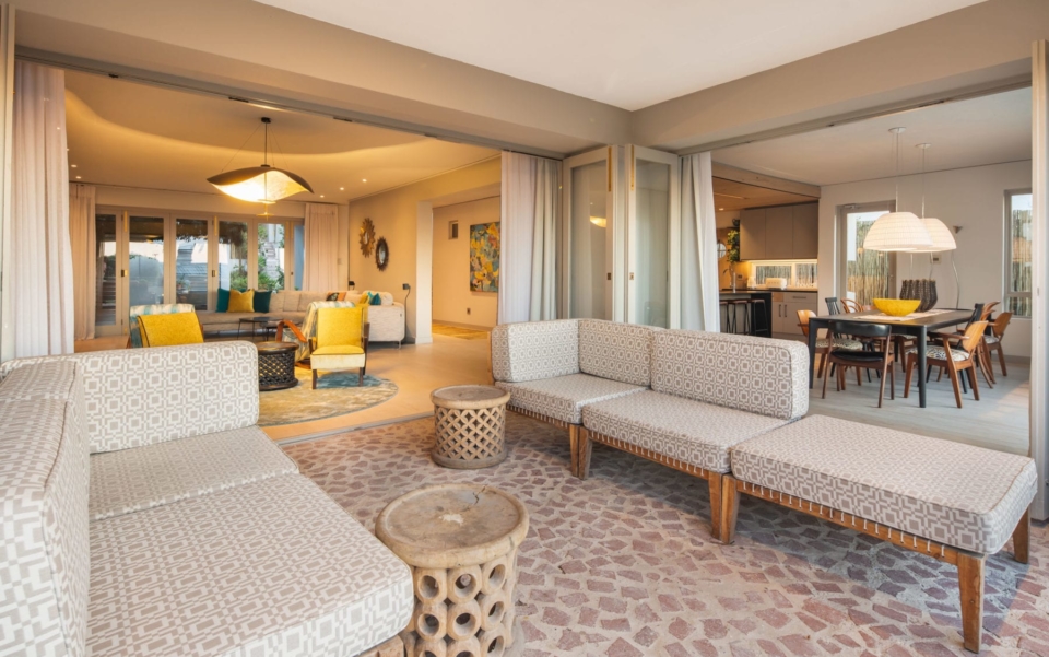 Each of the 5 bedrooms (bedroom 5 is downstairs) have their own unique character with vivid colours and subtle African accents. The impressive master bedroom provides you with endless ocean views and a perfect place to witness spectacular sunsets or breaching whales.