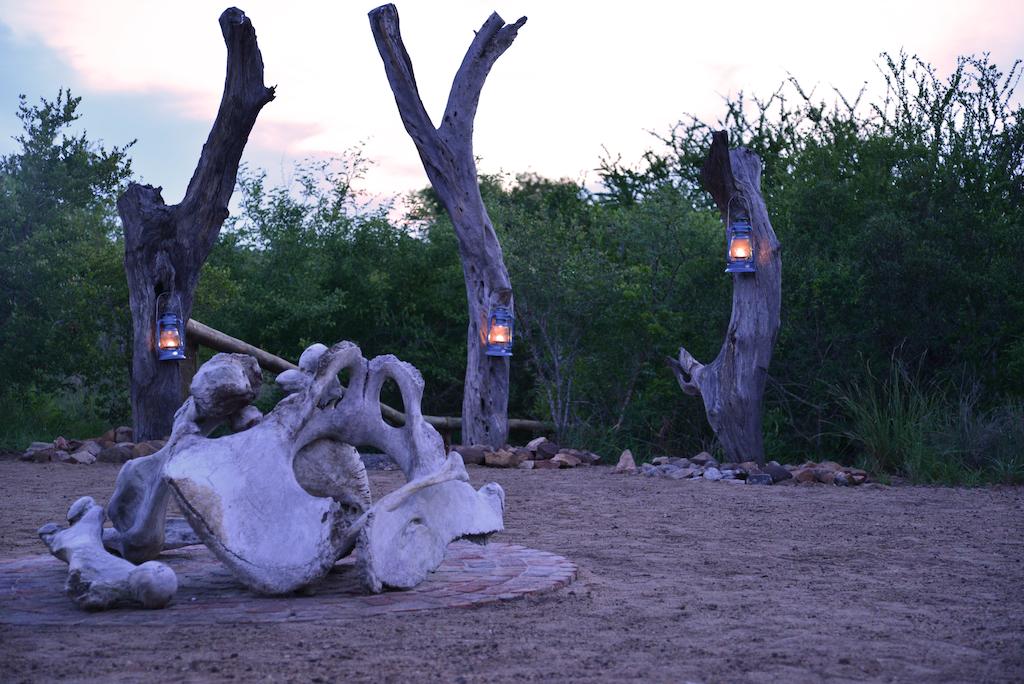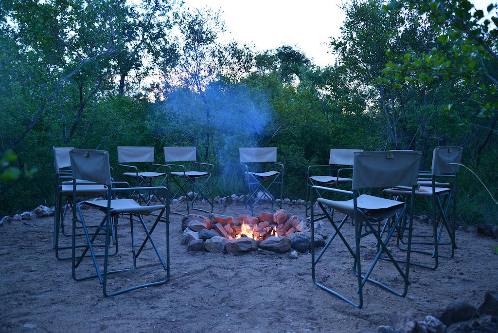 Dinners and breakfasts are served in a dining area located right on a dry riverbed and also has a large boma-area which hosts around the fire evening dances. The surrounds is teaming with birdlife and dense bush, but to secure safety to our guests the camp is fenced off from the larger wilderness area. There is few semi tamed antelopes in the camp and the occasional leopard can be heard and seen by exception.